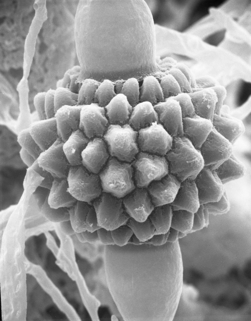 Above: zoomed in view of Cunninghamella homothallica. Photo taken by Flickr user zygolife. Released under a CCA-SA 2.0 Generic license. Source: Wikimedia Commons.