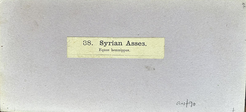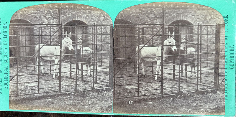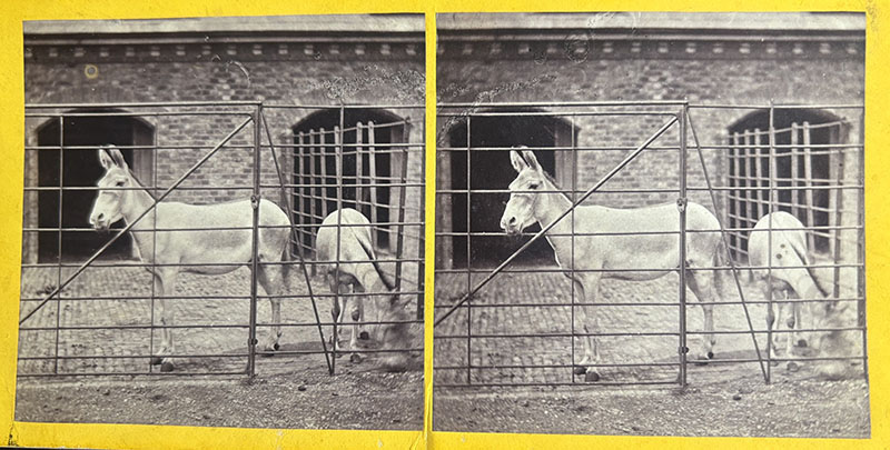 Above: London Zoo (Syrian wild ass on the right). Front and back of stereoview taken by Frederick York in Summer 1870. Held in a private collection. Photo: Ken Wallis. Reproduced with permission.
